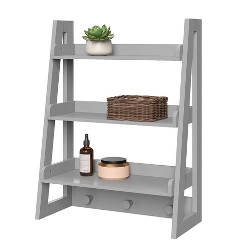 Wall Mounted Ladder Shelf With Towel Hooks Gray Riverridge Home